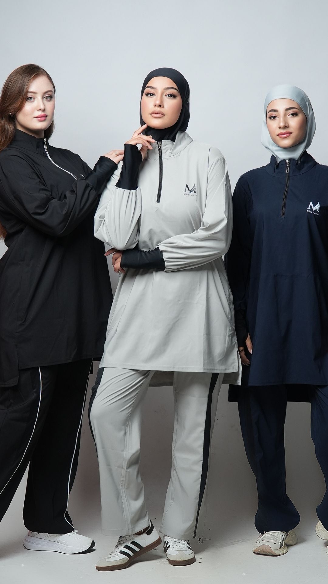 Mine Active répond à ce besoin avec une tenue complète et technique : une tunique fluide, un pantalon confortable et un turban de sport – pour offrir liberté de mouvement, confort et respect des valeurs.